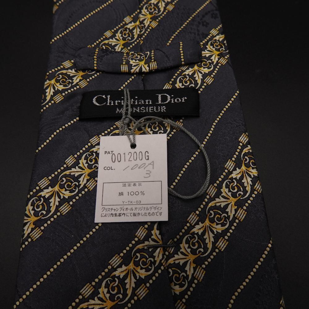 最高級シルク100%【正規品】クリスチャンディオール DIOR ネクタイ グレー系 光沢 柄物 Christian Dior