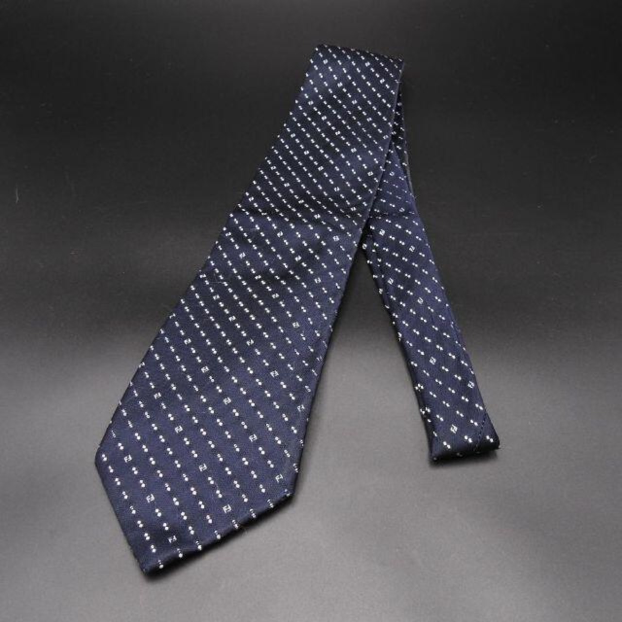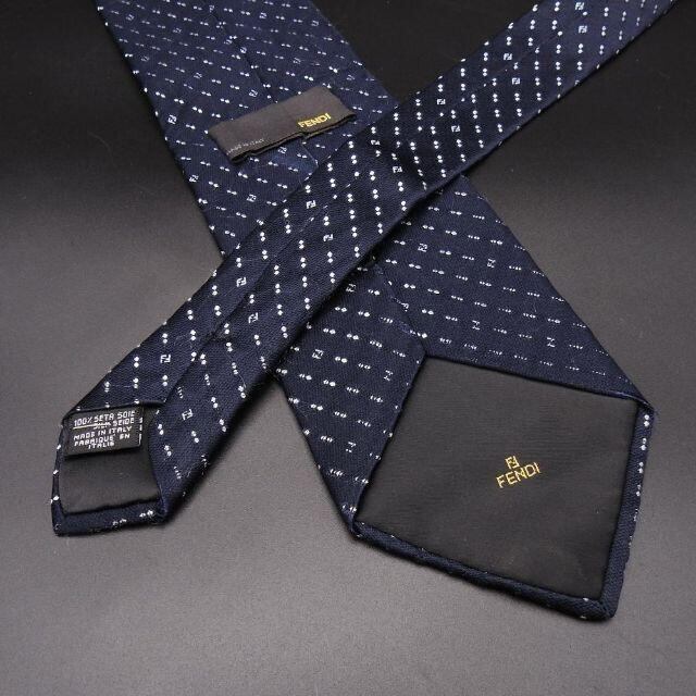 最高級シルク100%【正規品】フェンディ FENDI ネクタイ FF柄 イタリア製 ストライプ 濃いネイビー 総柄