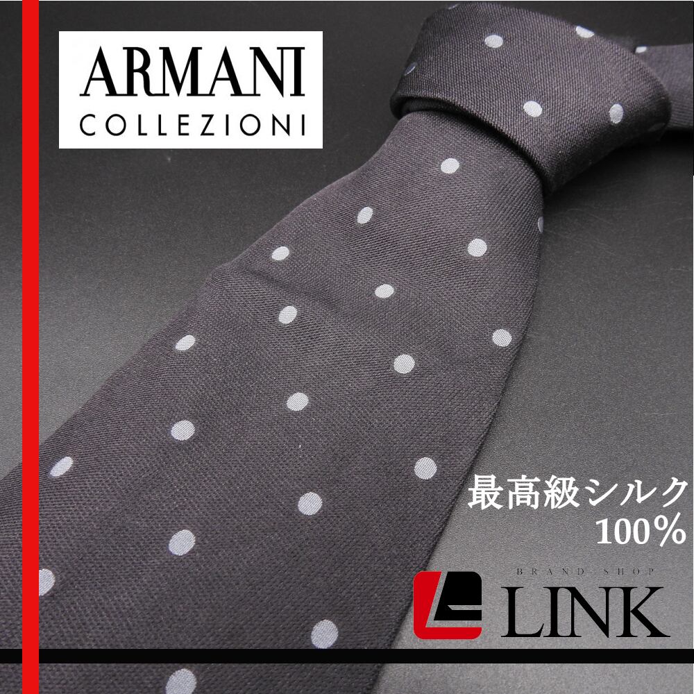 最高級シルク100%【正規品】ARMANI COLLEZIONI アルマーニコレツォーニ ネクタイ 紺系 水玉 イタリア製 ビジネス スーツ