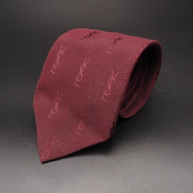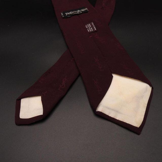 最高級シルク100% イヴサンローラン ワインカラー YSL 柄物 ネクタイ