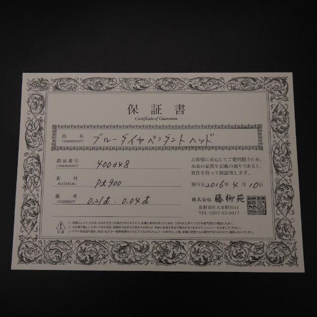 ◆付属品 鑑別書/保証書