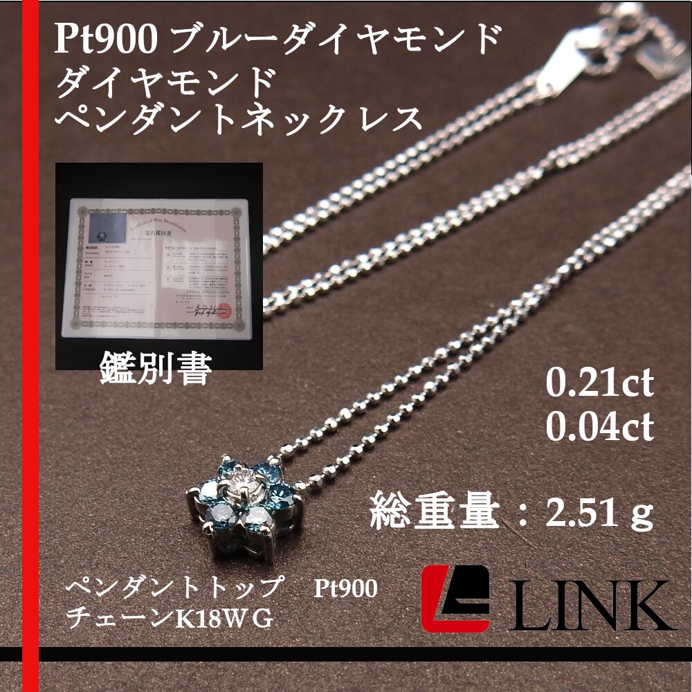 Pt900/K18WG トリートブルーダイヤモンド ペンダントネックレス
