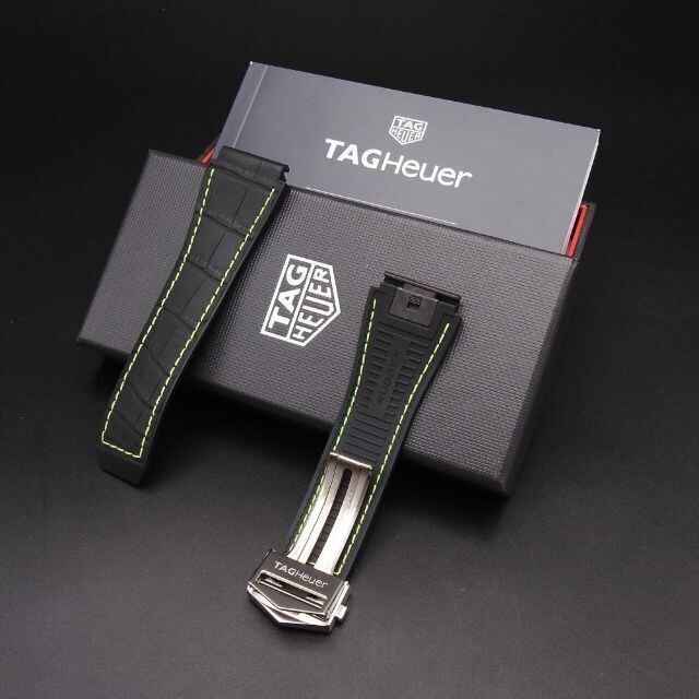 未使用品 正規品【Tag Heuer】 タグホイヤー 純正 アリゲーター柄×ブラックラバー ラバーバンド 22mm ベルト メンズ レディース