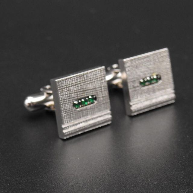 色石(グリーン) カフス カフリンクス メンズ シルバーカラー