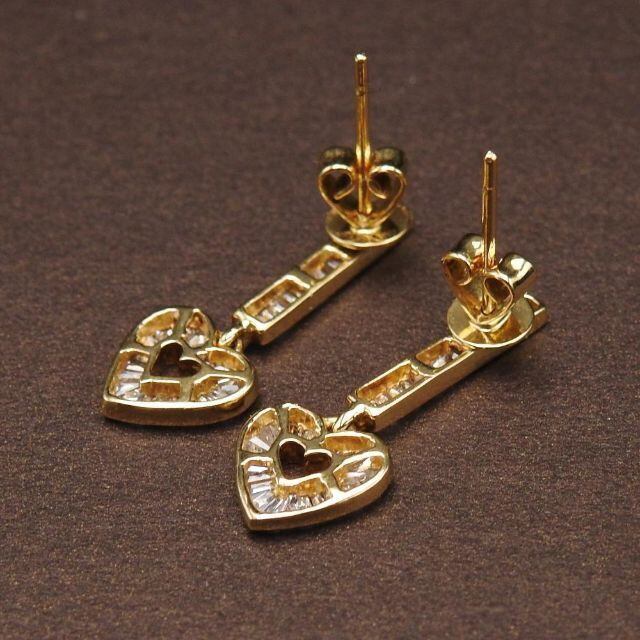 〔美品〕K18YG ダイヤモンド ピアス FD0.22×2(ハートモチーフ)