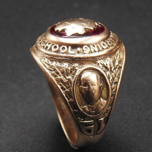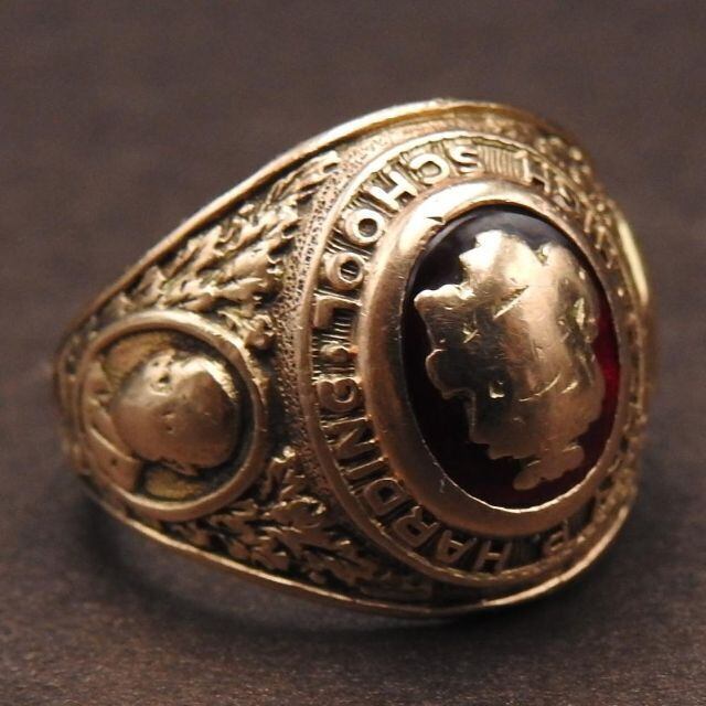 【入手困難】K10YG カレッジ リング 指輪 ヴィンテージ イエローゴールド 12号 9.3g JENKINS社 HIGH SCHOOL HARRY P.HARDING クラスリング(Class Ring)