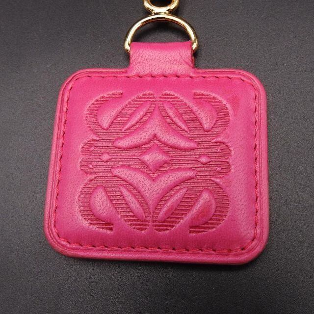 【正規品】ロエベ LOEWE キーホルダー ピンク レザー アナグラム スクエア バッグチャーム ゴールドカラー レディース