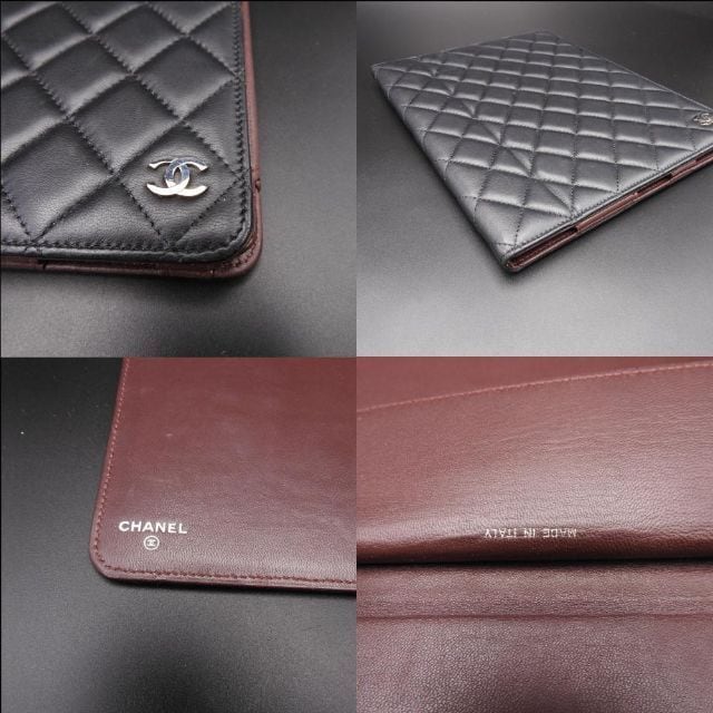 希少【正規品】シャネル CHANEL iPadケース CC タブレットケース マトラッセラムスキン メンズ レディース ブラック
