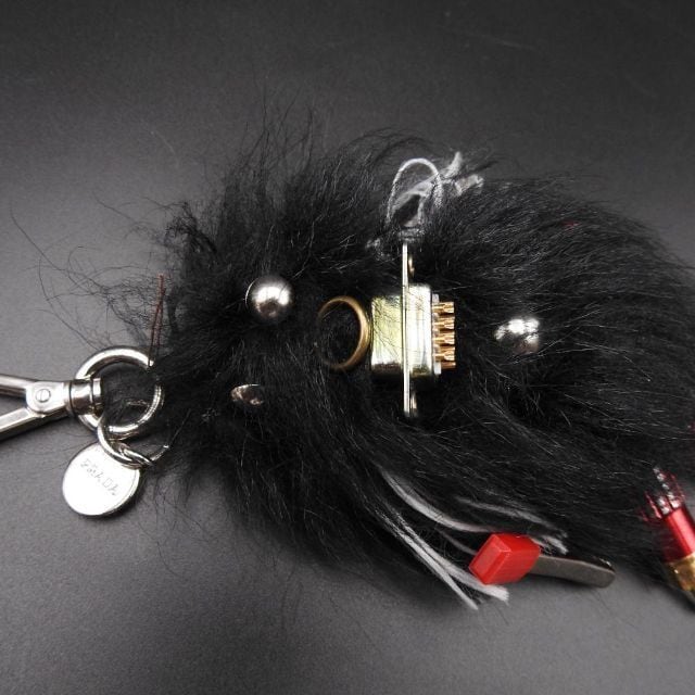 商品名:PRADA - プラダ キーホルダー クリップハンド シープファー ロボットチャーム キーリング 黒 シルバー