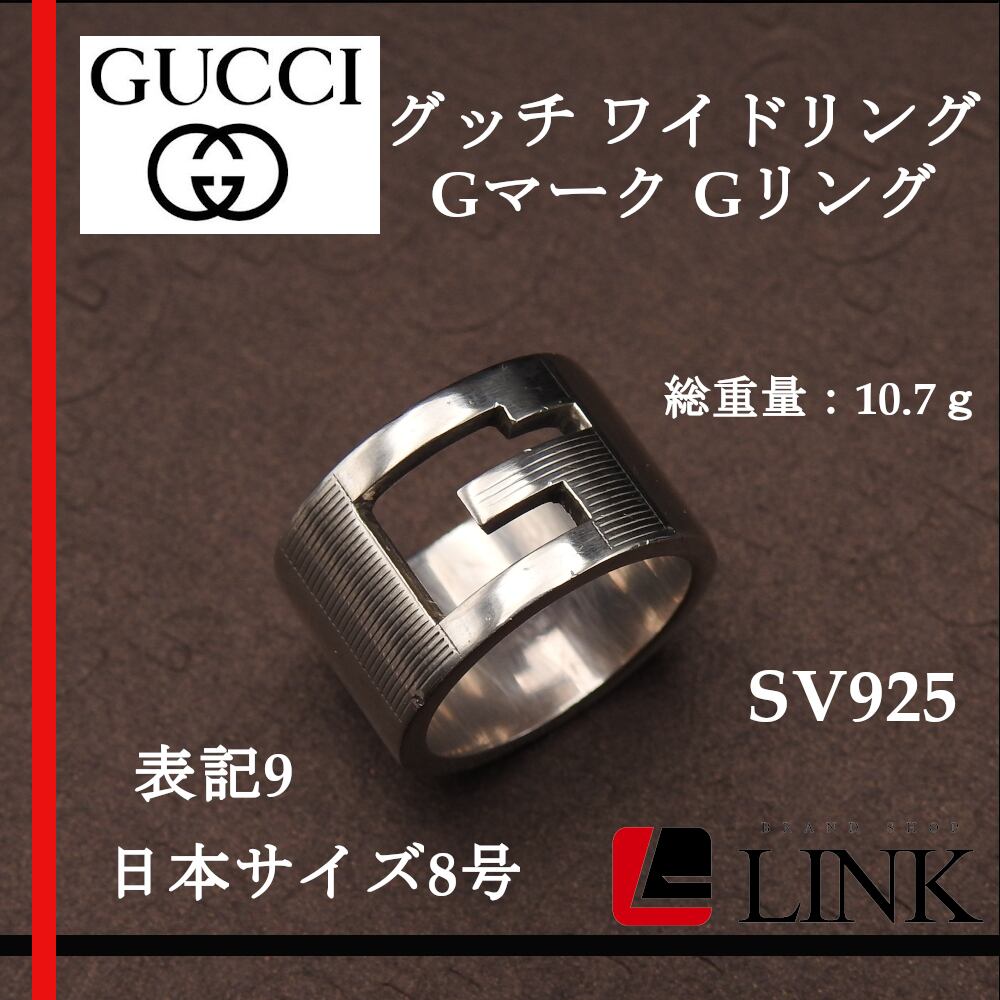 【正規品】グッチ GUCCI 指輪 日本サイズ8号 表記9 Gリング Gロゴ ワイドオープンリング シルバー925 レディース 刻印あり アクセサリー