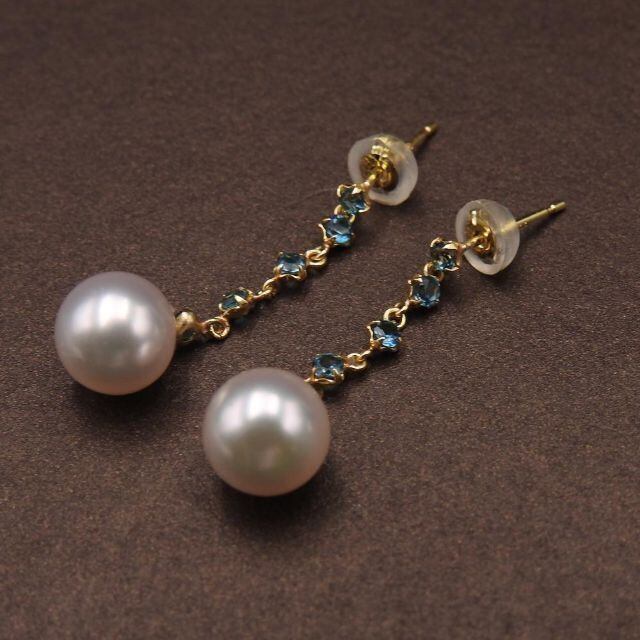 【未使用品】K18YG ピアス アコヤ真珠 パール 8mm ロンドントパーズ 18金 イエローゴールド レディース アクセサリー ジュエリー