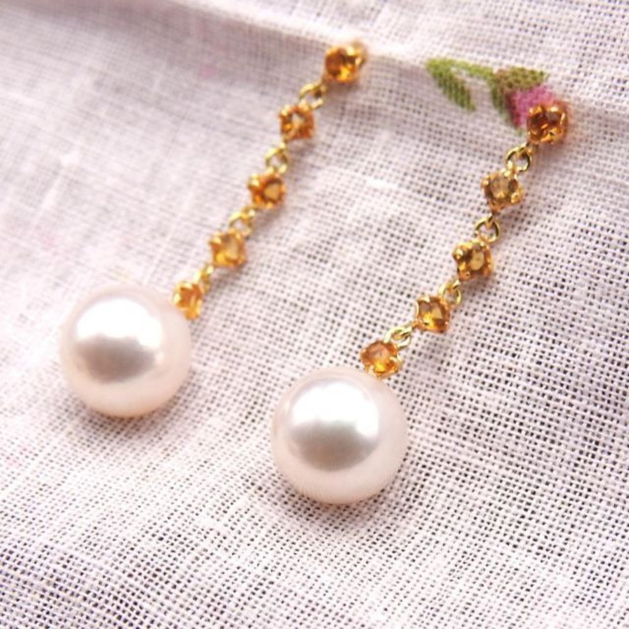 ◆素材 K18(イエローゴールド)/アコヤ真珠パール8mm シトリン