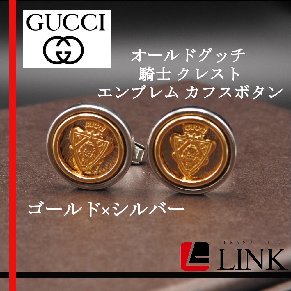 【正規品】Gucci グッチ カフス オールド 騎士 クレストエンブレム カフスボタン カフリンクス メンズ ゴールド×シルバー