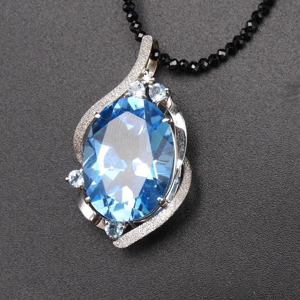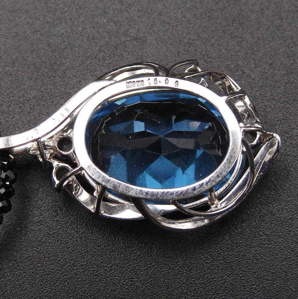 ◆素材 K18WG ホワイトゴールド ブルートパーズ 15.09/0.35 ダイヤモンド D0.01 ネックレス:金具K18WG/黒石