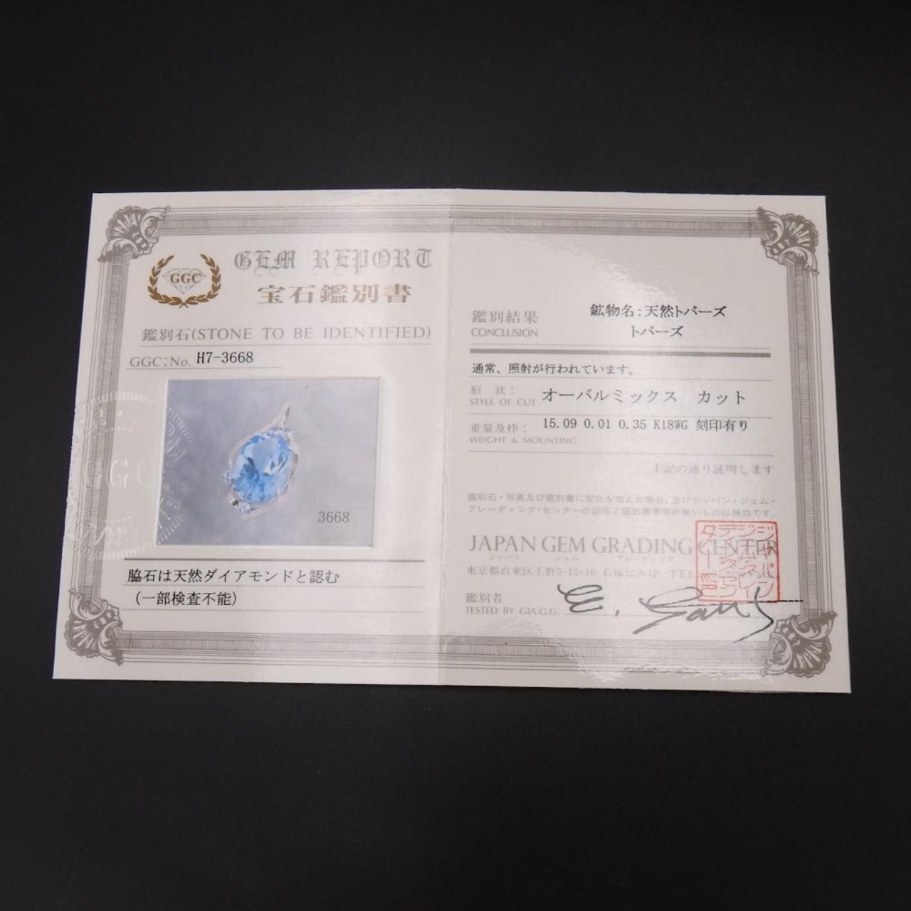 ◆付属品 ミニ鑑定書付