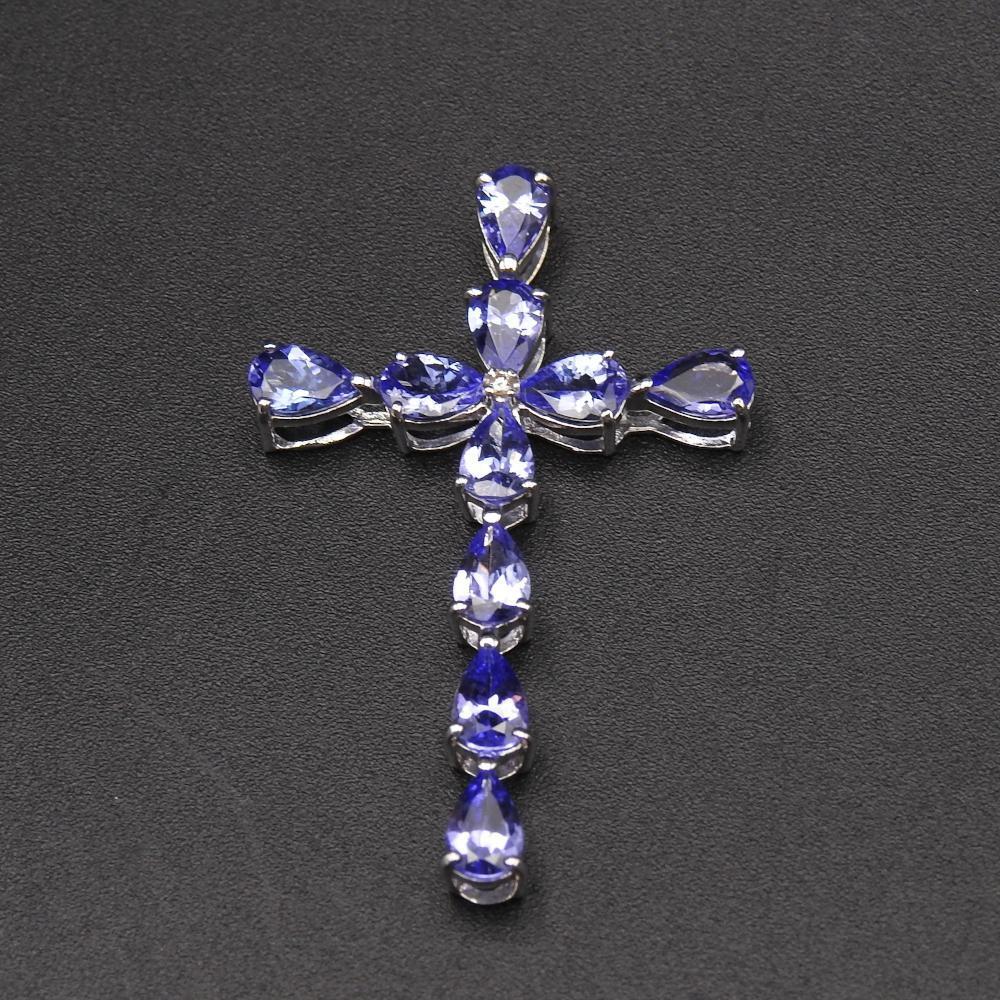【商品名】K18WG ホワイトゴールド クロスペンダントトップ タンザナイト 3.84ct ダイヤモンド D0.01ct