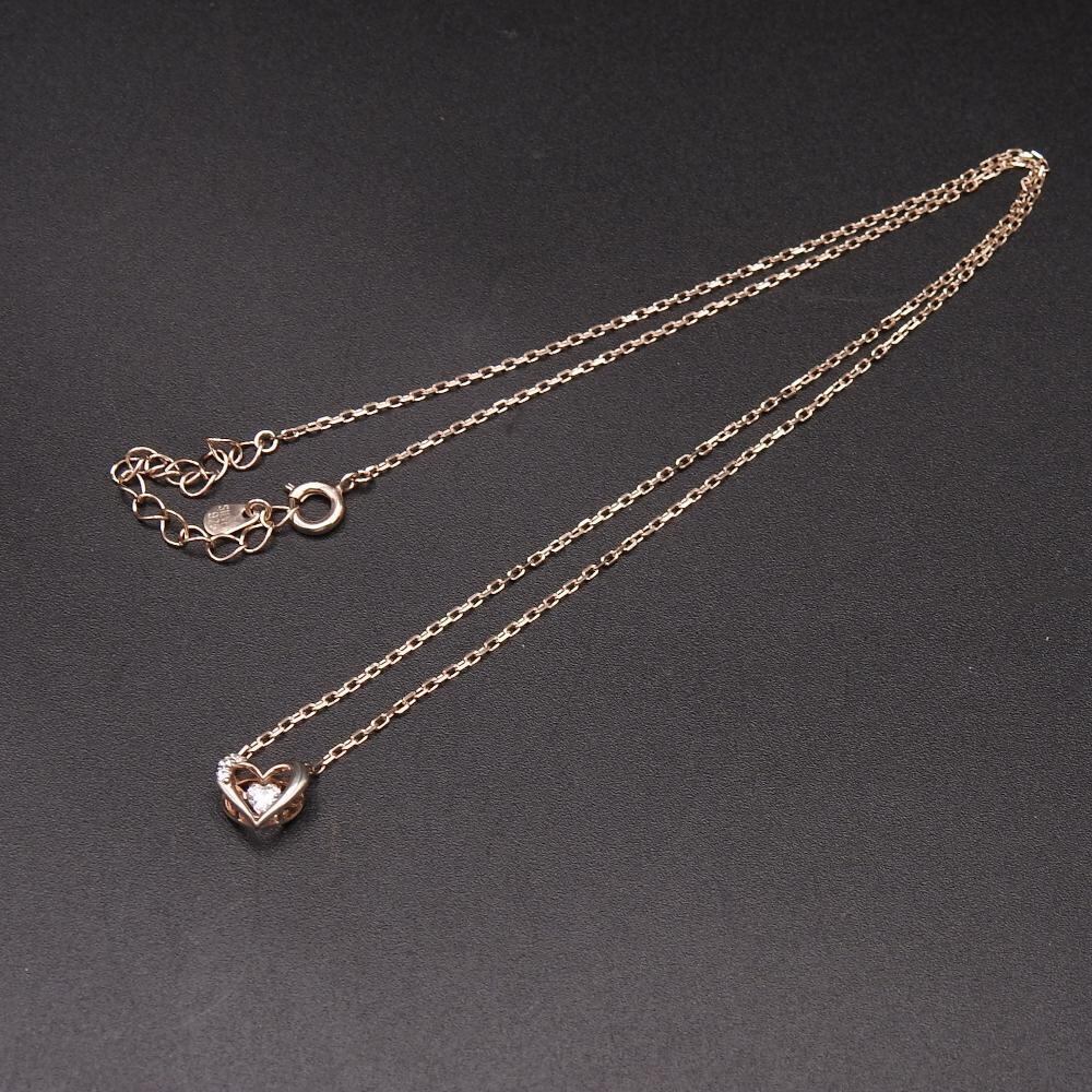 【美品】PINKY & DIANNE(ピンキー&ダイアン) ハートネックレス ダンシングストーン透明石付き シルバー Sv925 レディース ペンダント アクセサリー