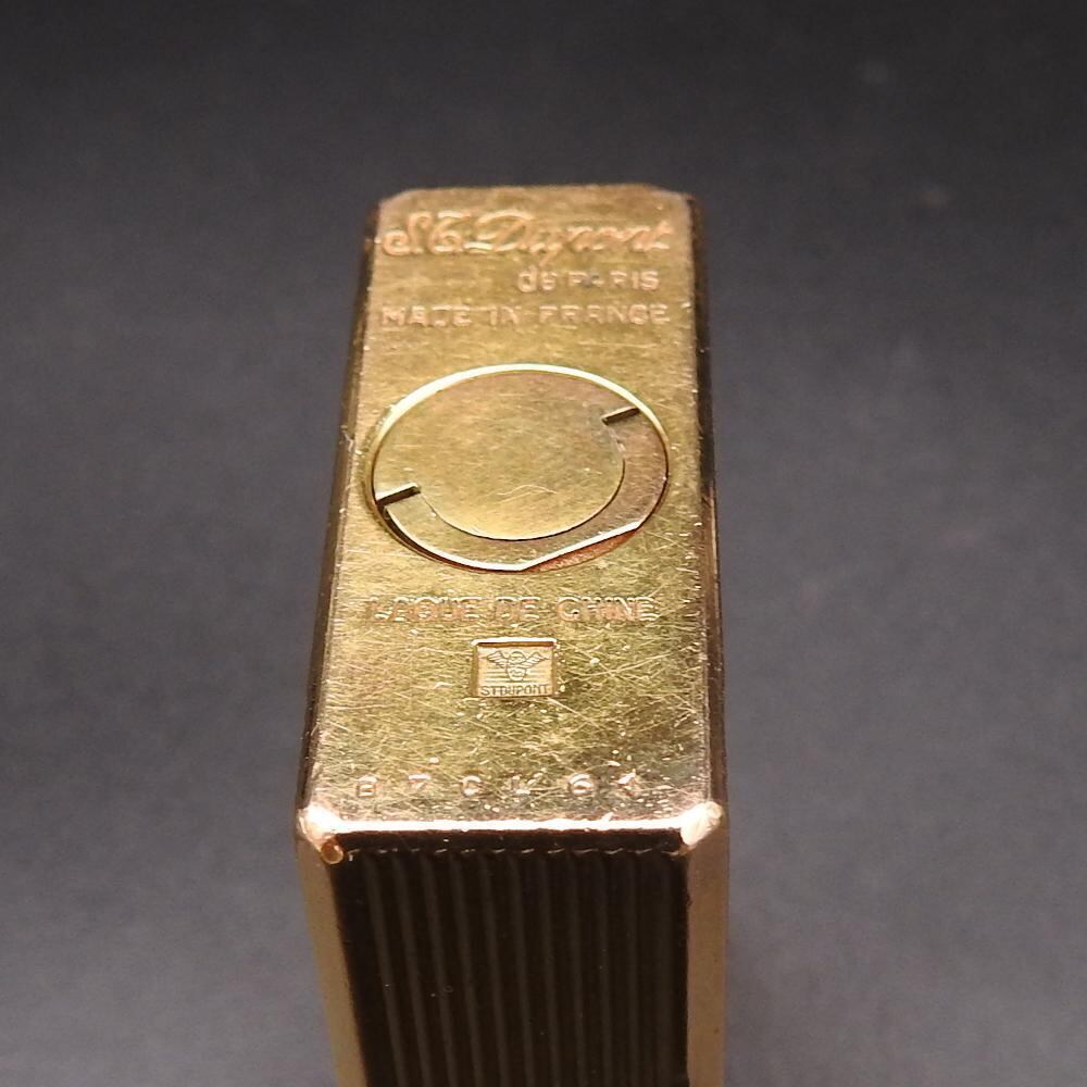 【着火未確認】S.T Dupont エス・テー・デュポン ライン1 ショート ゴールド×ブラック漆 ガスライター 現状 コレクション ヴィンテージ