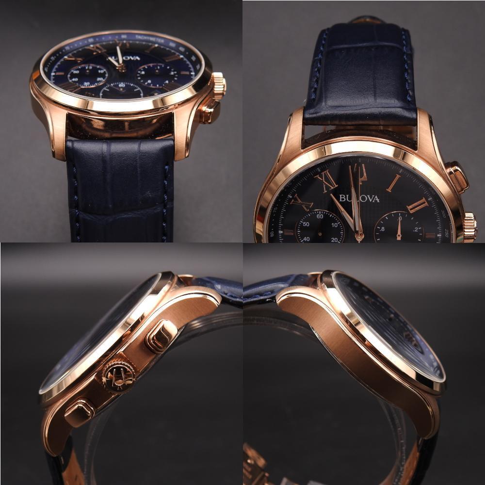 正規品 BULOVA ブローバ 97B170 時計 メンズ クロノグラフ ローズゴールド ブルー レザーベルト