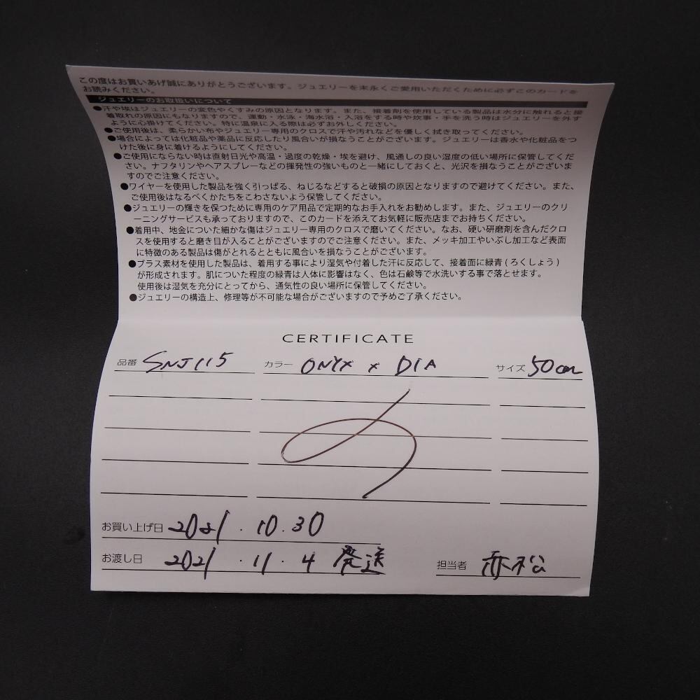 美品【正規品】justin davis オニキス ダイヤ 50cm ネックレス