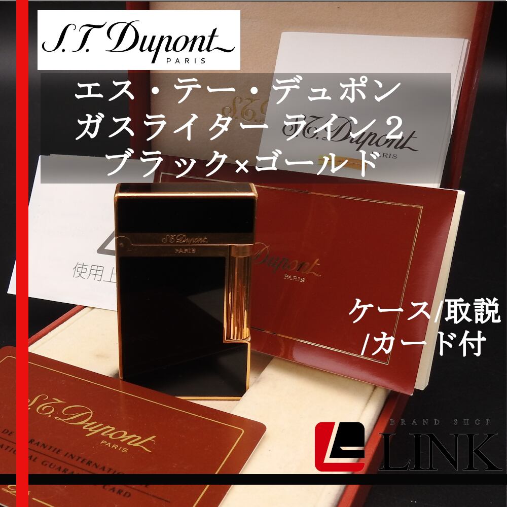 【着火確認済み】S.T Dupont エス・テー・デュポン ライン2 Dロゴ入り ガスライター ブラック×ゴールド メンズ 喫煙グッズ