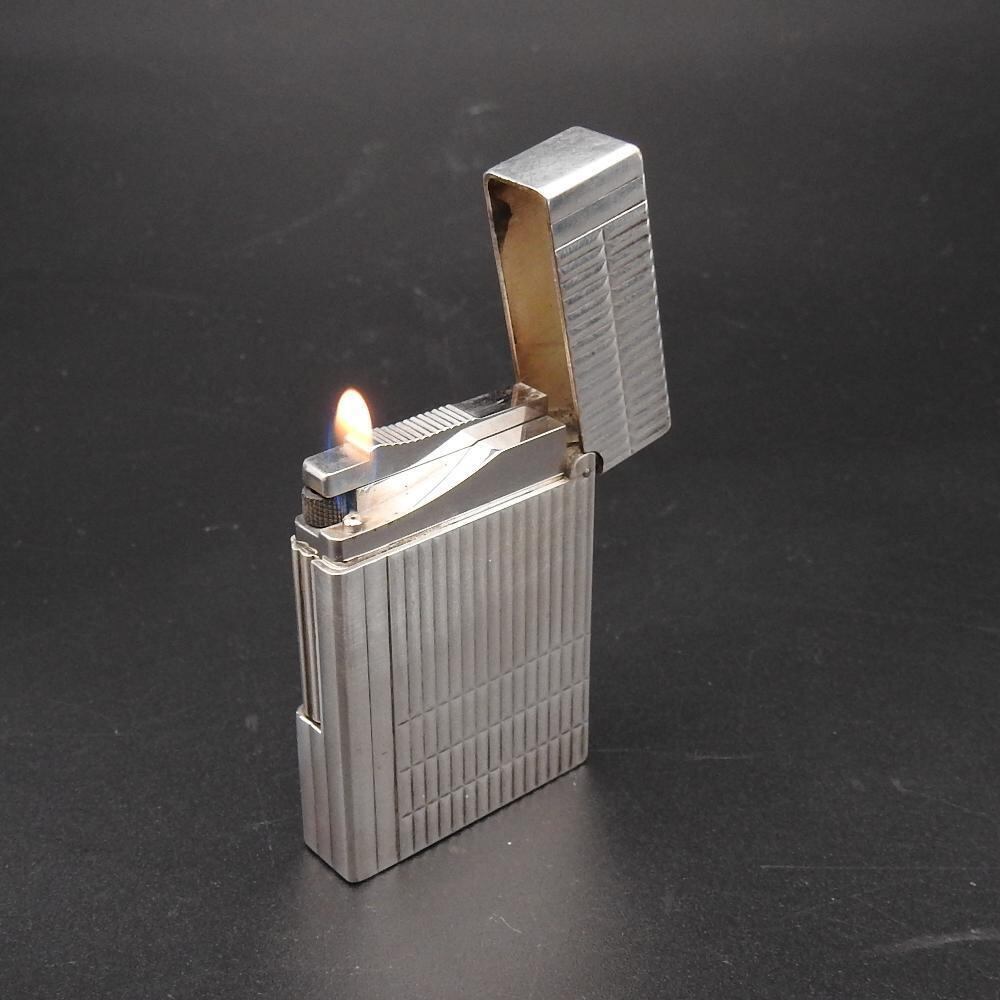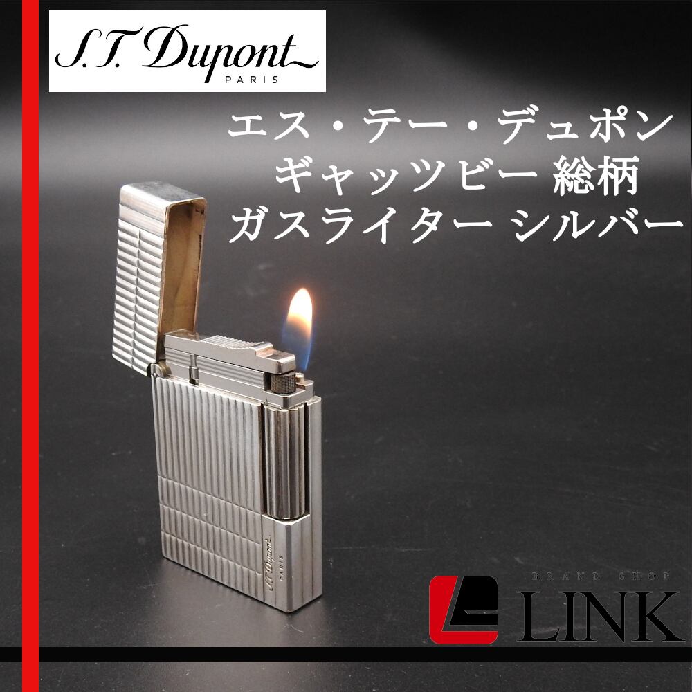 【着火確認済み】エス・テー・デュポン S.T Dupont ガスライター ギャッツビー 総柄 ロゴ入り シルバー メンズ 喫煙グッズ