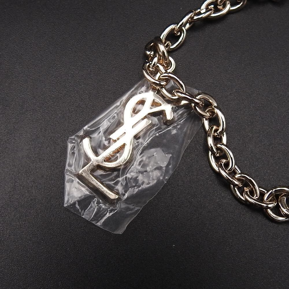 【正規品】Yves Saint Laurent イヴサンローラン 3モチーフ ブレスレット バッグチャーム YSL シルバーチェーン ロゴ入り