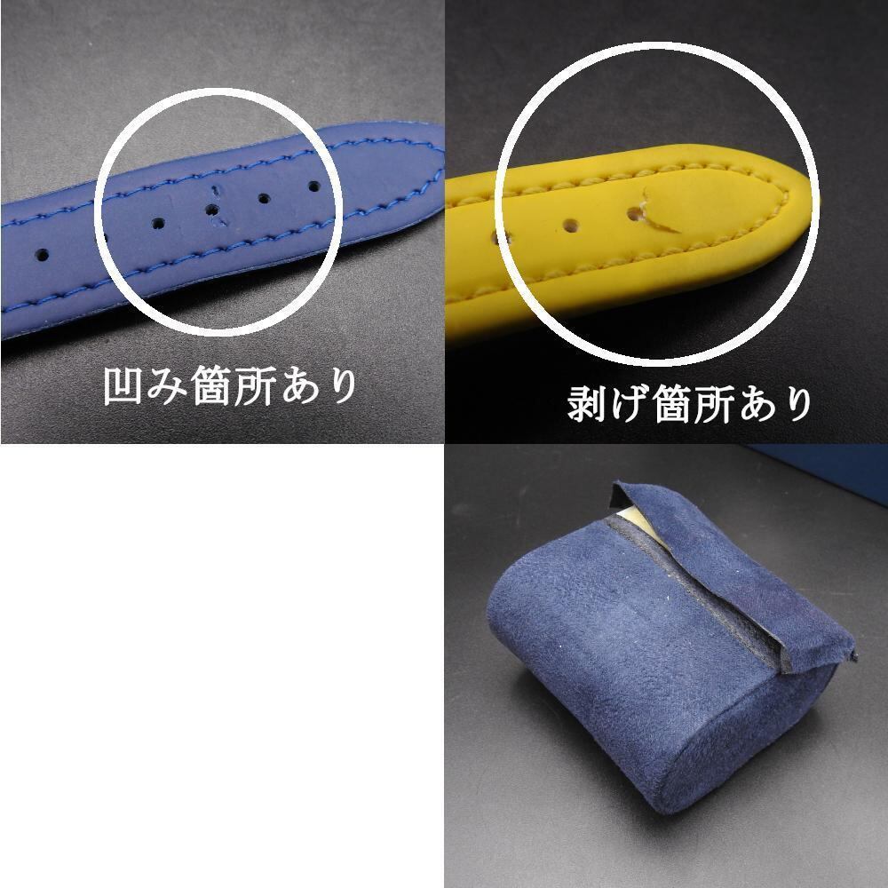 純正イエローベルトは1か所剥げてるとこあります。少し黒ずんでいますが、純正替えベルト(ブルー)は1か所へこんでますが使用には問題ありません。
