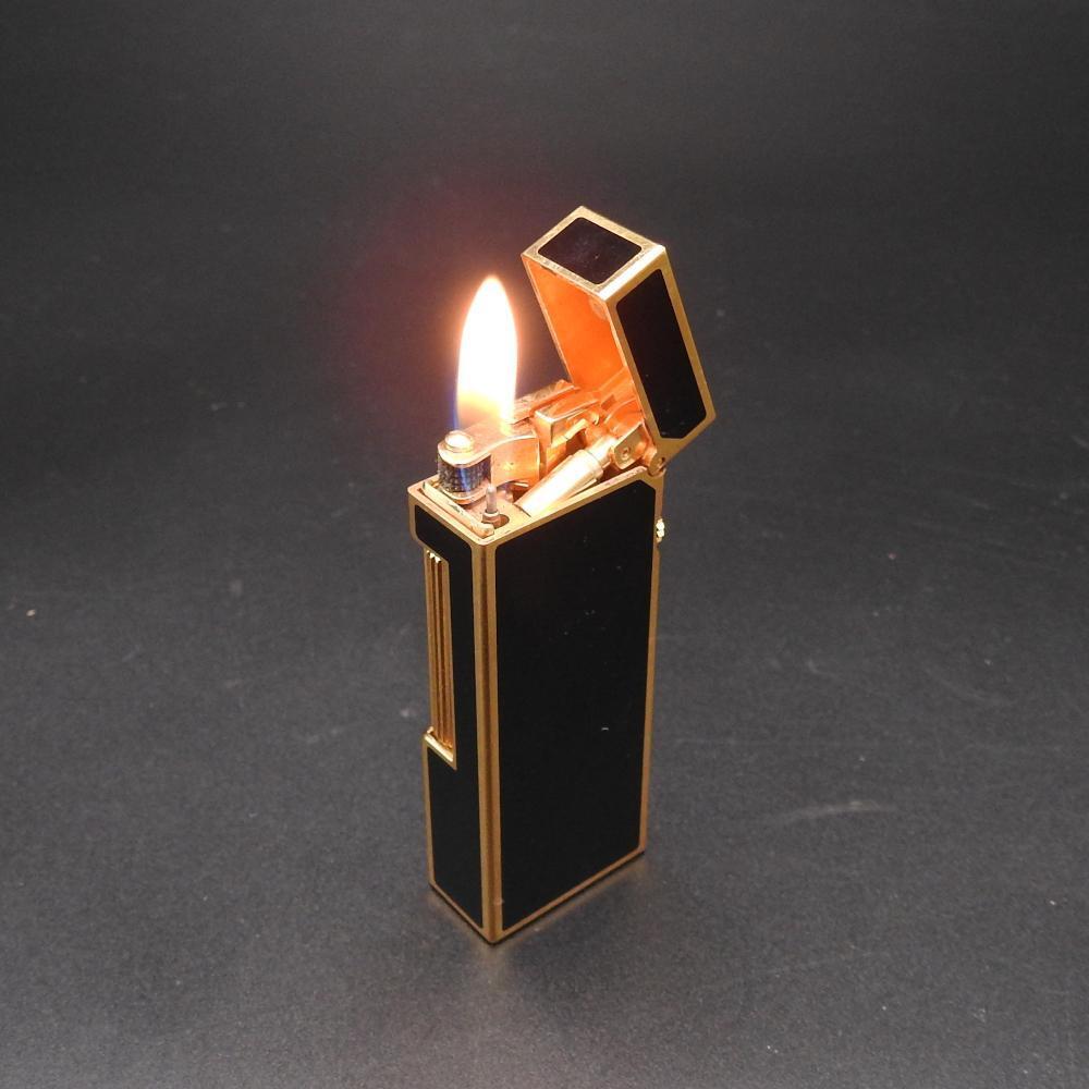 【着火確認済み】ダンヒル dロゴ入り ブラック×ゴールド ガスライター