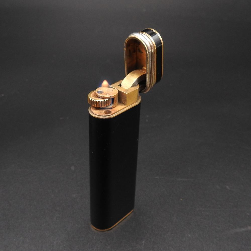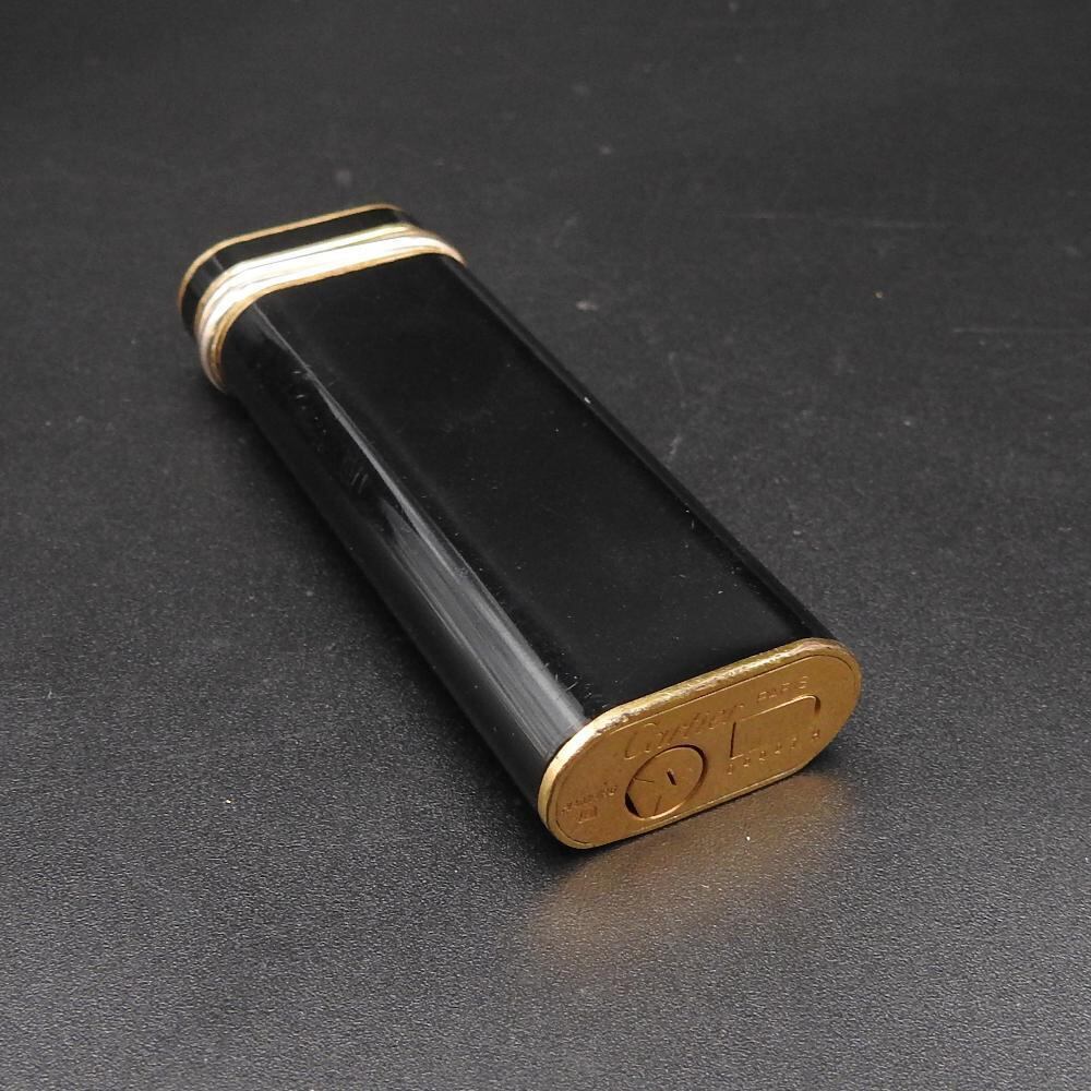 【着火確認済み】Cartier カルティエ トリニティ ラッカー ロゴ入り オーバル ローラー式 ガスライター ラッカーブラック×ゴールド 現状渡し 喫煙グッズ 昭和レトロ