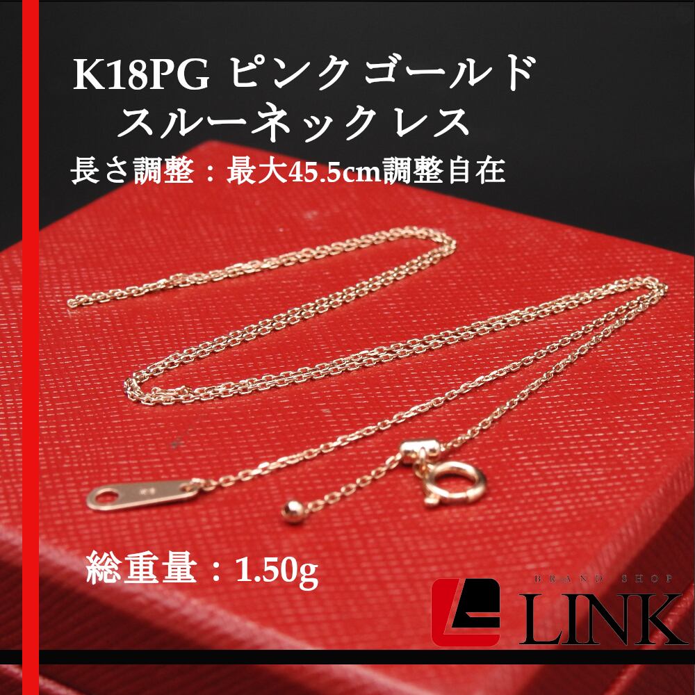 【美品】K18PG ピンクゴールド スルーネックレス レディース スライド調整 長さ調整:最大45.5cm調整自在