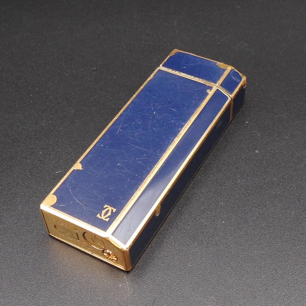 【着火確認済み】Cartier カルティエ 五角ガスライター ブルー×ゴールド