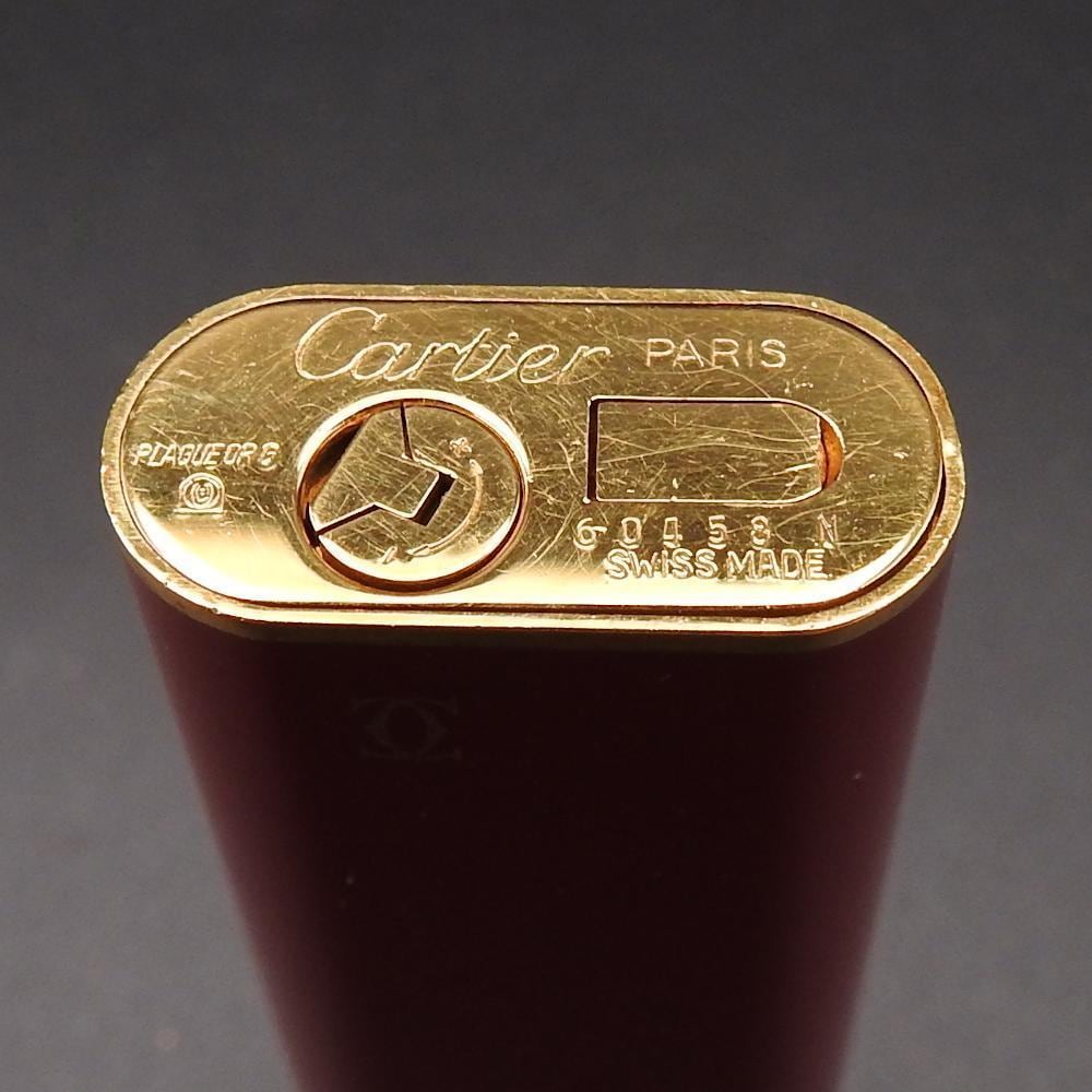 【着火確認済み】Cartier カルティエ トリニティモチーフ ガスライター ボルドー×ゴールド スイス製 メンズ レディース