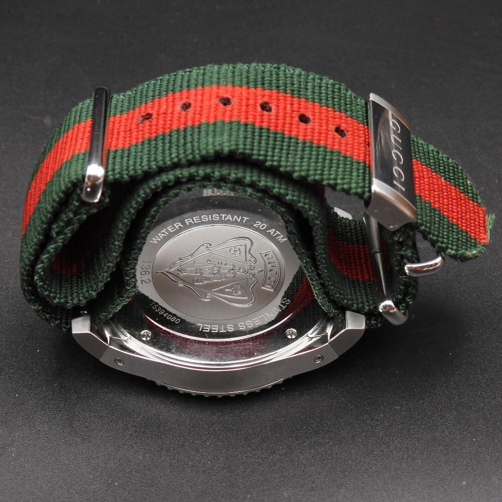 【商品名】美品【正規品】【稼働確認済み】GUCCI(グッチ) DIVE ダイブ ブラック 文字盤 SS クォーツ 45MM スイス Watch YA136206 マルチカラー メンズ レディース