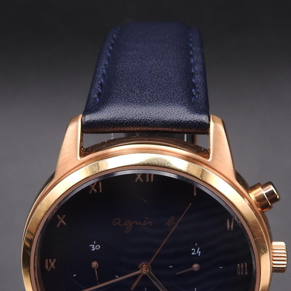 【稼働確認済み】agnes b. アニエス・ベー VR42-KDD0ソーラー時計 カレンダー クロノグラフ ピンクゴールド/ネイビー メンズ 腕時計