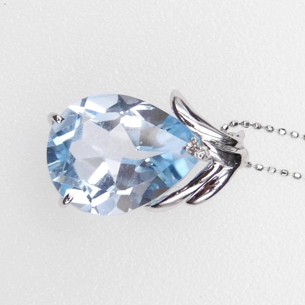 【美品】天然ブルートパーズ 8.63 K18WG ホワイトゴールド ダイヤモンド D 0.01 スルーネックレス アクセサリー レディース
