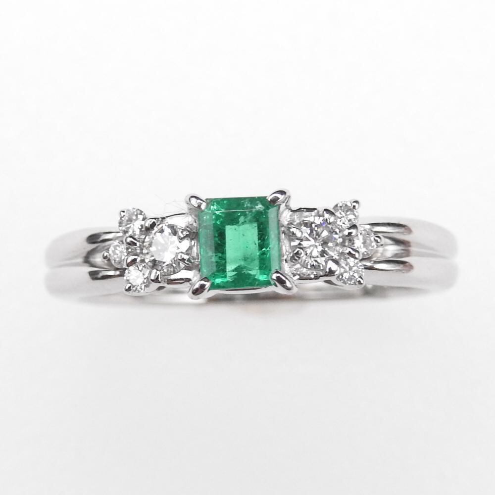 ◆素材 :PT900 プラチナ リング エメラルド 0.31ct ダイヤ D 0.18ct