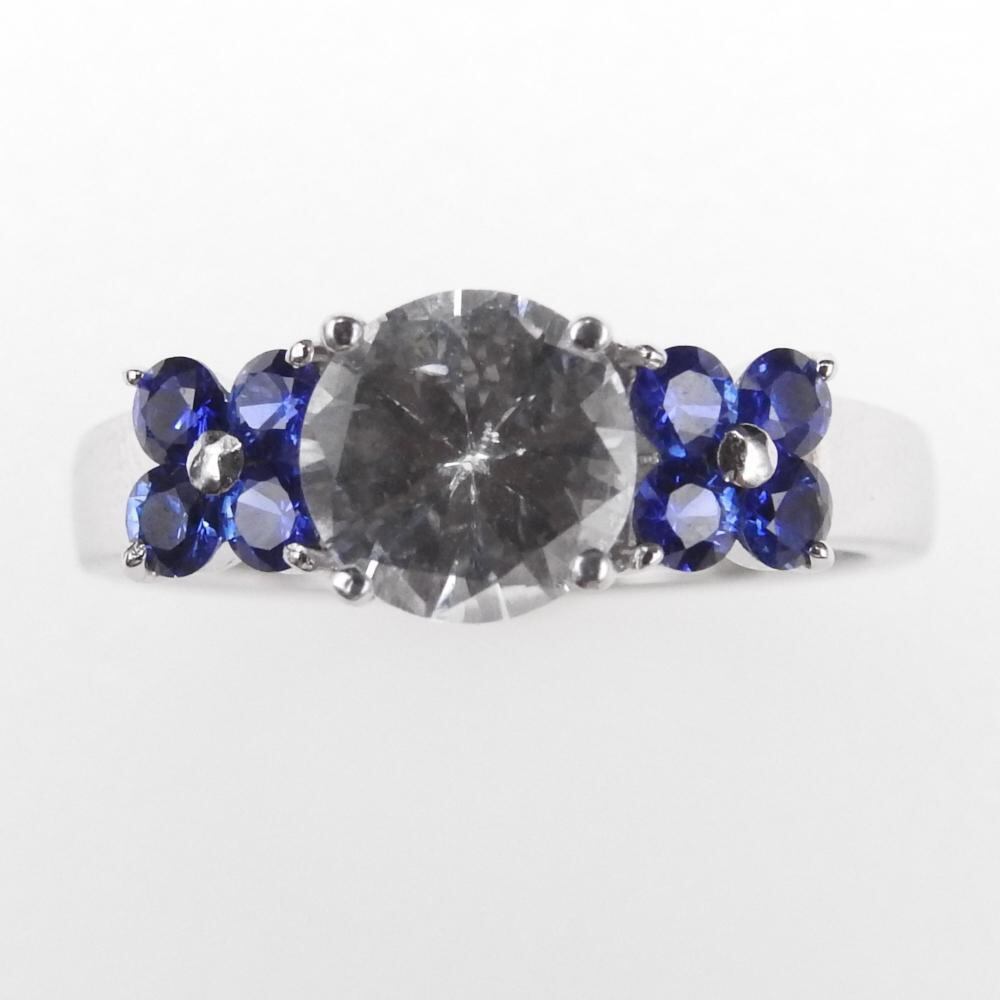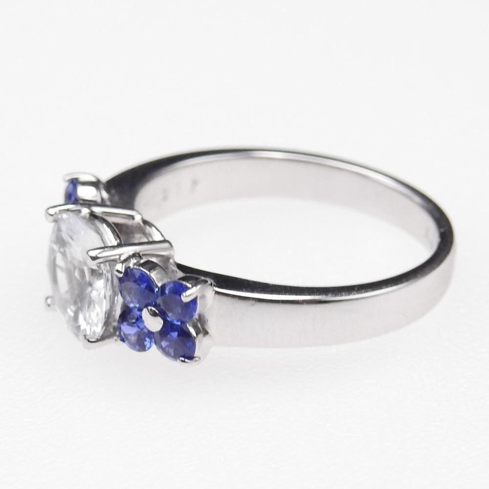 K18リング ホワイトサファイア 1.317ct ブルーサファイア0.30ct
