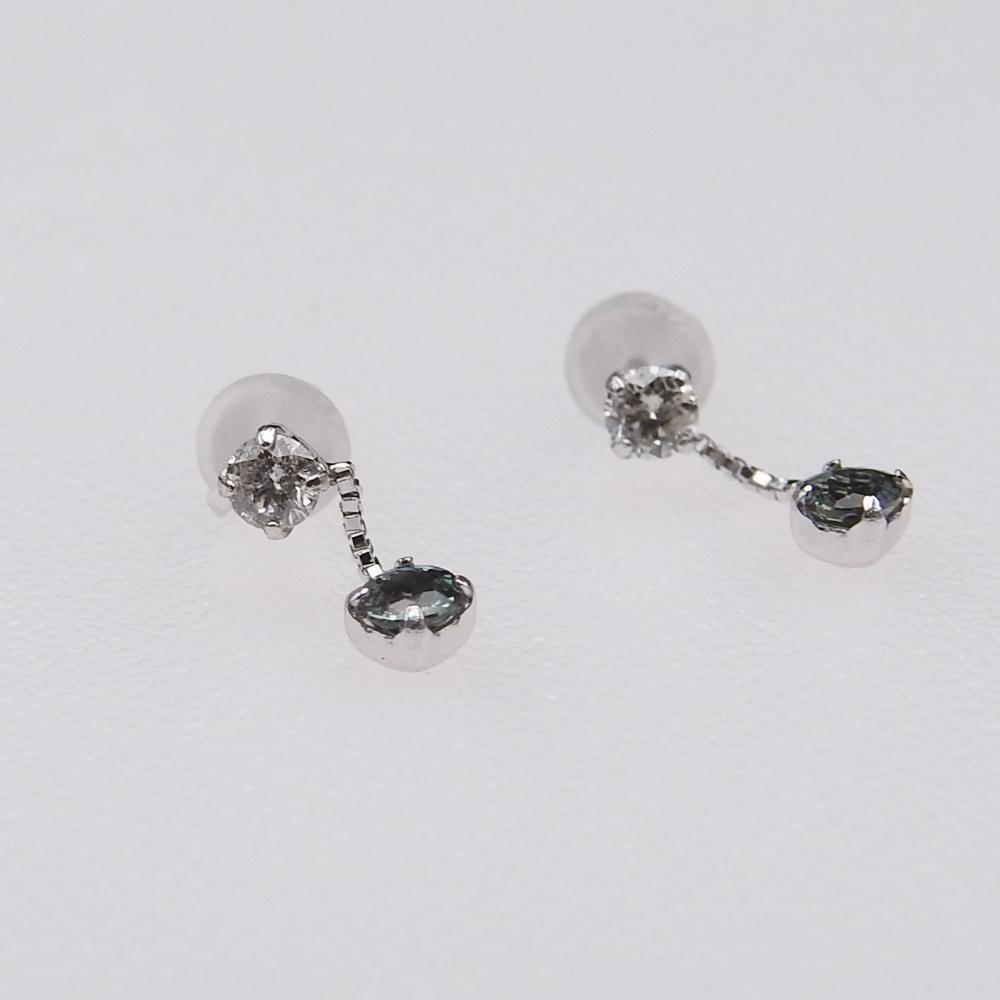 〔美品〕PT900 プラチナ アレキサンドライト ピアス ダイヤモンドD0.05ct/0.05ct レディース