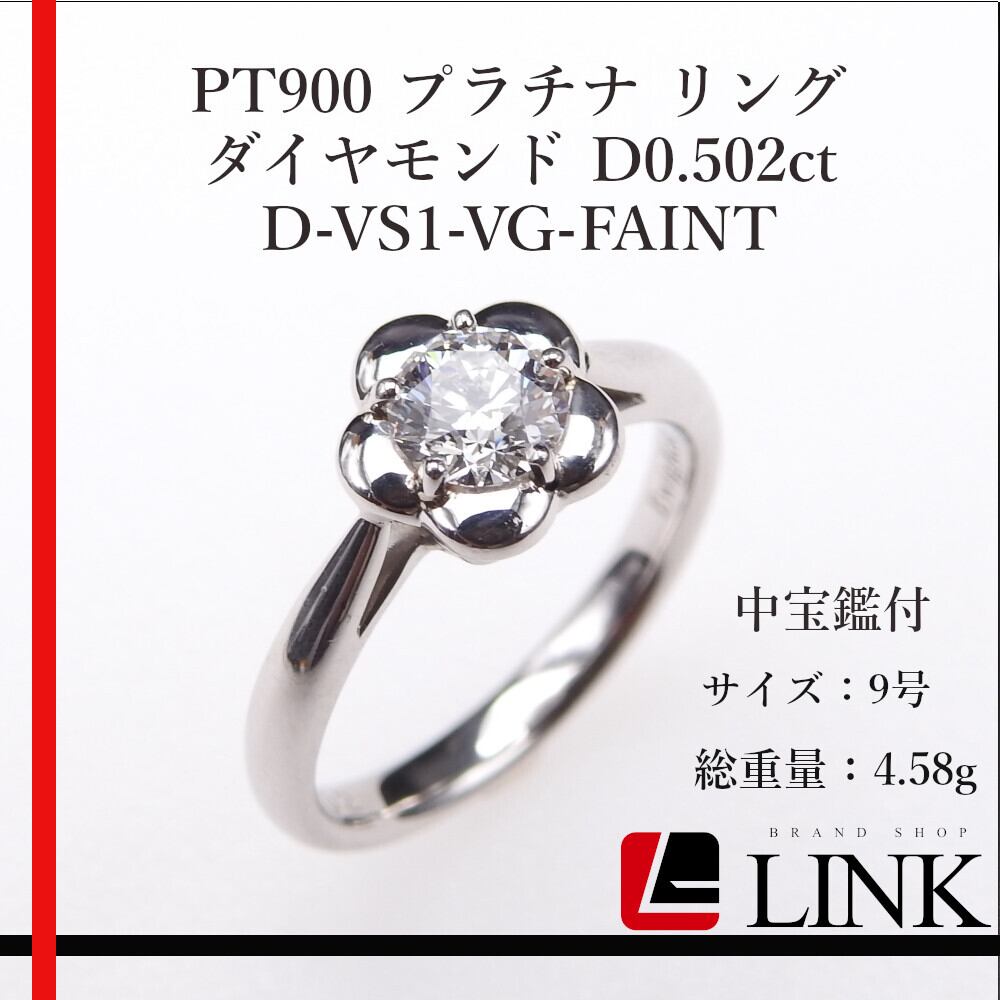 【美品】PT900 リング D0.502ct D-VS1-VG-FAINT