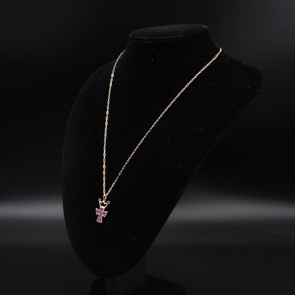 正規品 GaGaMILANO ガガミラノ K18PG ピンクゴールド ネックレス ルビー0.54ct クラウンクロス メンズ レディース