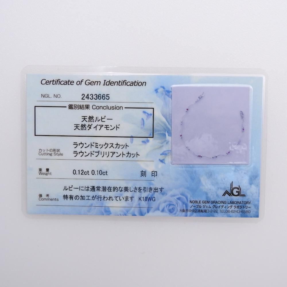 K18WG ルビー0.12ct 天然FD0.10ct ブレスレット 宝石鑑別書付