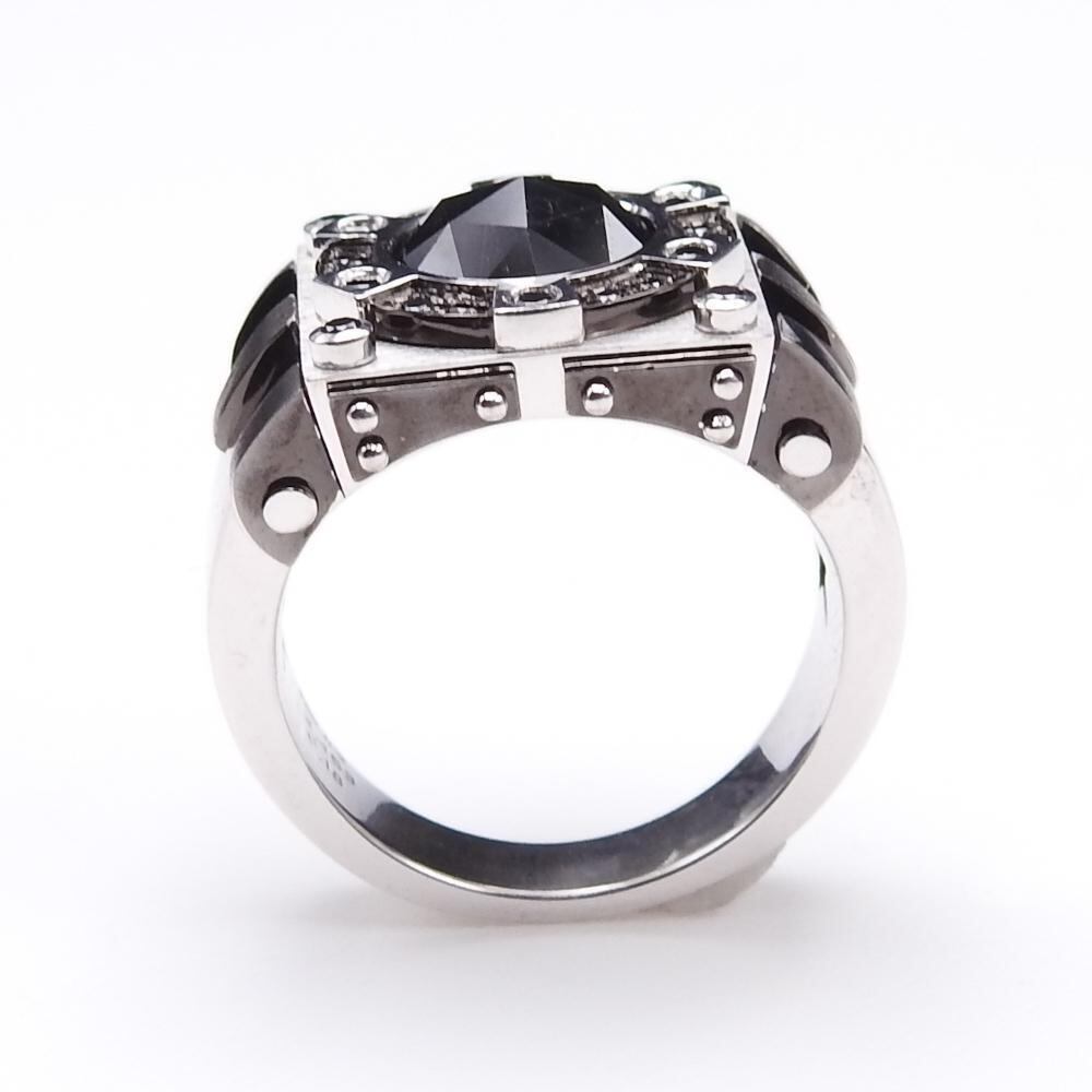 【商品名】【豪華】750WG K18WG ホワイトゴールド ブラックダイヤモンド BD2.453/0.18ct 印台 リング 11.5号 13.5g