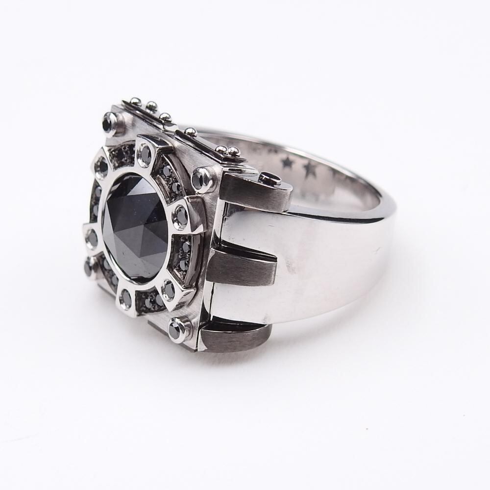 【豪華】750WG K18WG ホワイトゴールド ブラックダイヤモンド BD2.453/0.18ct 印台 リング 11.5号 13.5g