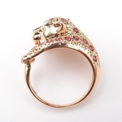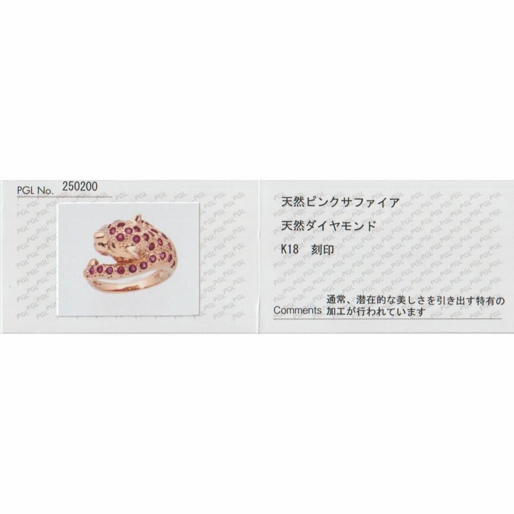 【美品】K18YG 天然ピンクサファイア 天然ダイヤモンド パンサーリング