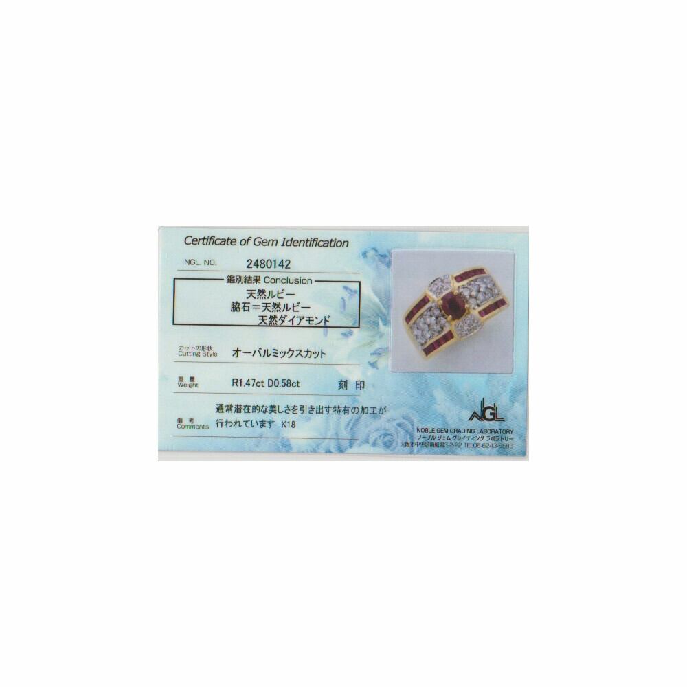 ◆素材 K18 ルビー1.47ct ダイヤモンド D0.58ct