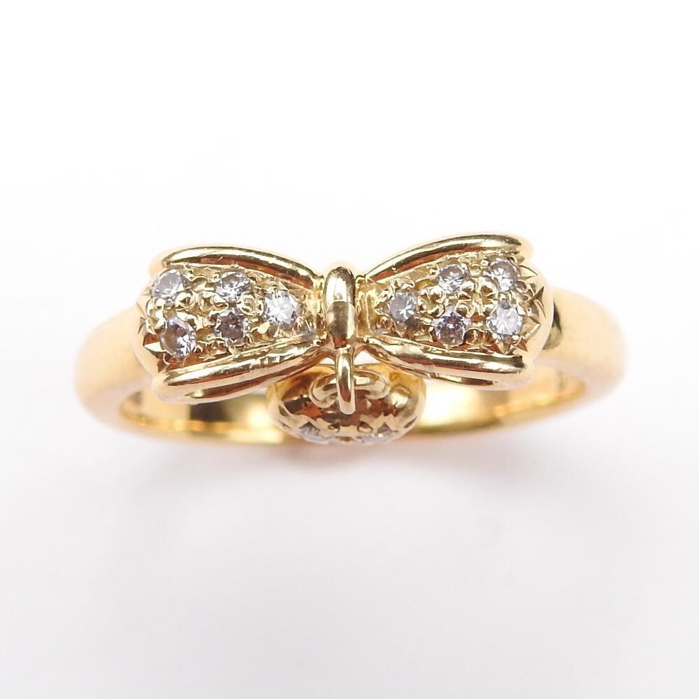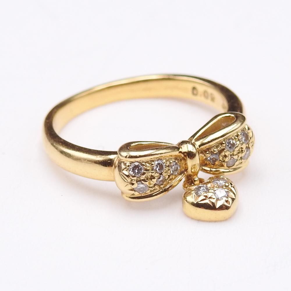 TASAKI K18YG 天然ダイヤモンド0.09ct リボン/ハートリング