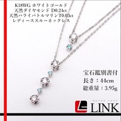 K18WG 天然ダイヤ D0.24ct 天然パライバT0.03ct ネックレス