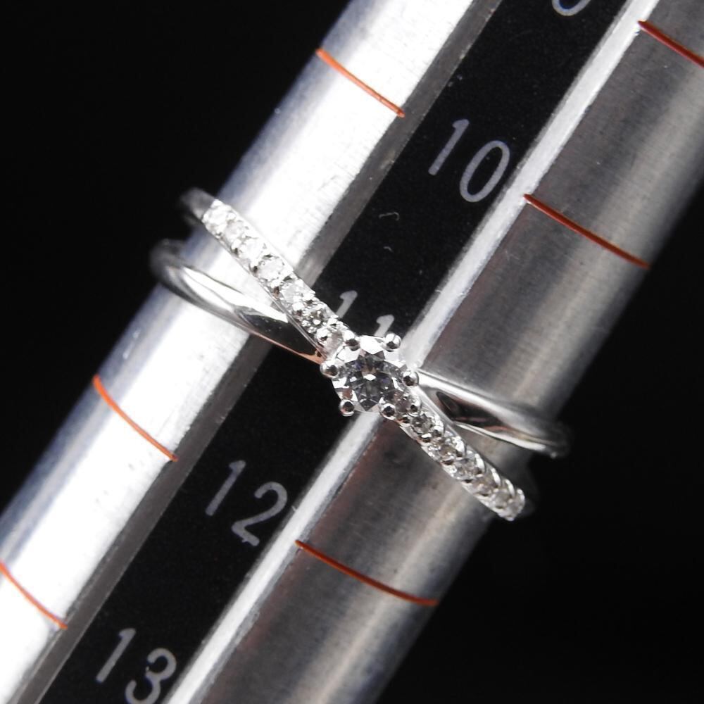 【美品】K14WG ホワイトゴールド 天然ダイヤモンド D0.18ct リング 11号 ジュエリー 指輪 レディース