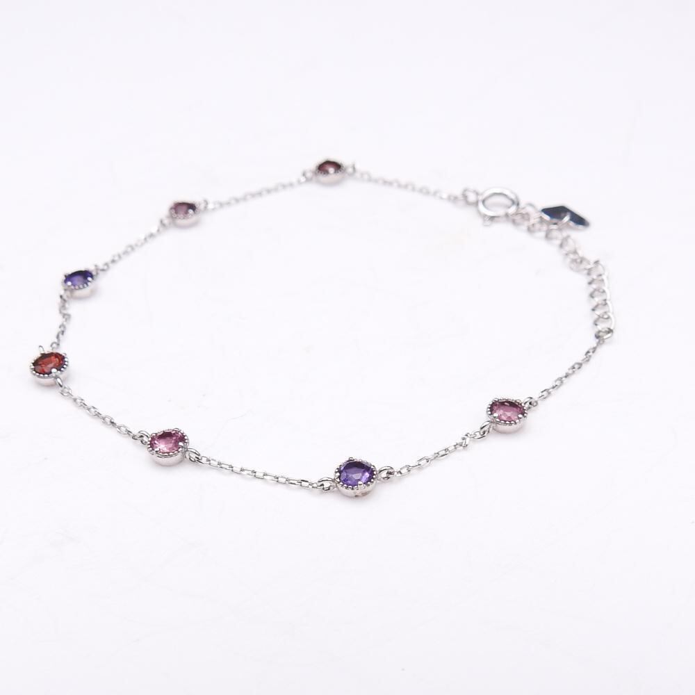 K10 ホワイトゴールド マルチカラー石 ブレスレット レディース